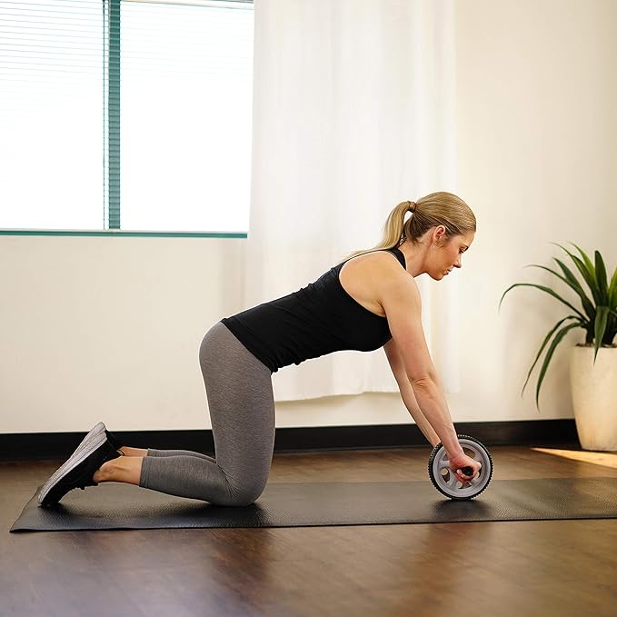 - DOUBLE-WHEEL DESIGN: Wide shaped wheel ensures stability and bears the weight of your entire body. The wheelβs textured surface promotes stability and control. Handles prevent slipping and while reducing hand fatigue.