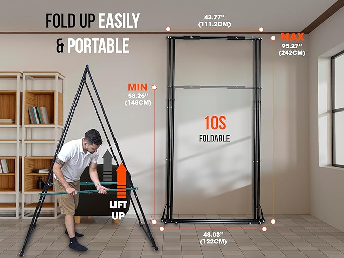 • All-in-One Exercise Solution: Engineered for versatility, the KT folding free standing pull up bar KT1.1518 is ideal for a variety of workouts, including pull-ups, aerial yoga, calisthenics, street workouts, and gymnastics training. Designed to accommodate both children and adults, it is perfect for promoting height growth in kids and teens, while enhancing overall physical health and fitness levels for users of all ages at home, in schools, offices, and beyond