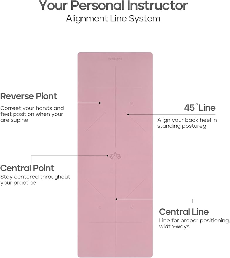 Heathyoga Eco Friendly Non Slip Yoga Mat, Body Alignment System, SGS Certified TPE Material - Textured Non Slip Surface and Optimal Cushioning,72"x 26" Thickness 1/4"