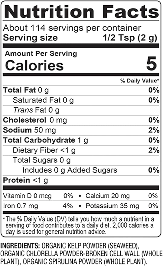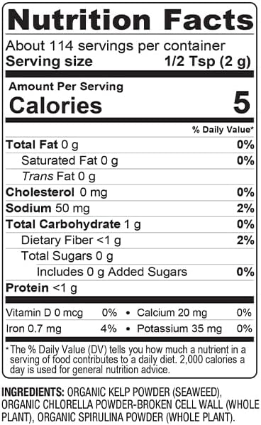 BareOrganics Marine Super Greens Powder | USDA Organic, Gluten-Free, Vegan, Non-GMO, BPA-Free | Kelp, Chlorella, Spirulina, 8oz