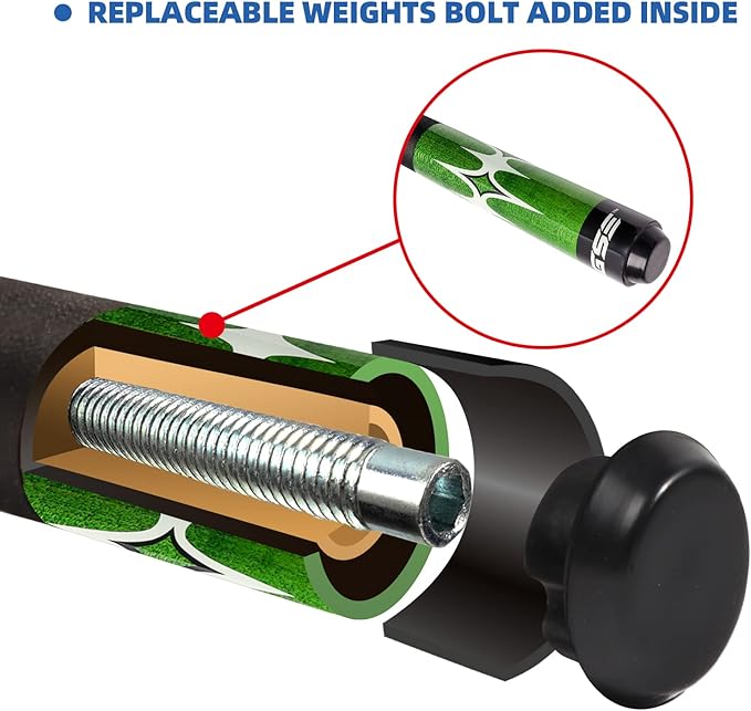 - Premium Material: The pool cue shaft is made of A grade Canadian hardwood maple; the cue butt is made of Australian hardwood with a decal sleeve