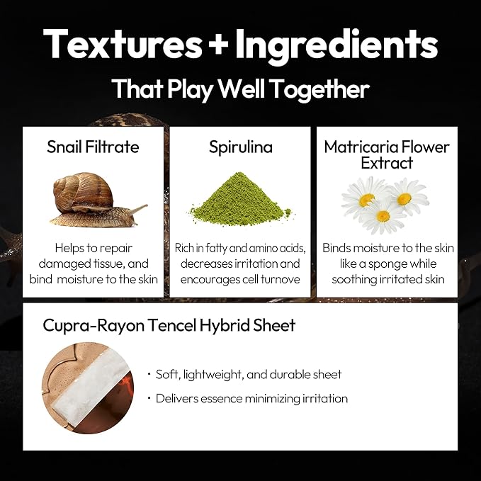 • REGENERATING SNAIL SKINCARE - Our Escargot cupra rayon and tencel sheet mask, rich in revitalizing benefits, helps to reverse environmental damage for a youthful complexion