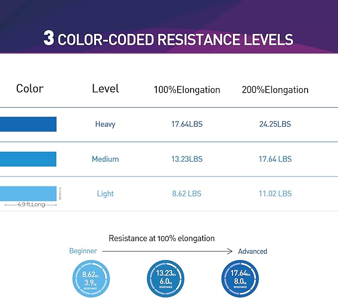 • 【Fun & Easy To Use】 The Bands are Perfect for Resistance Training and Rehabilitation, Which Provides Both Positive and Negative Force. You Can Take a Couple Wraps Around Your Hands for More Tension and a Secure Grip. or Just Tie a Knot, For Use as a Loop Band, and also You Can Double Them Up for Even More Resistance. The Bands are Vibrantly Color-Coded, Once You are Ready for a More Challenging workout, You can Move Up to The Next Color.