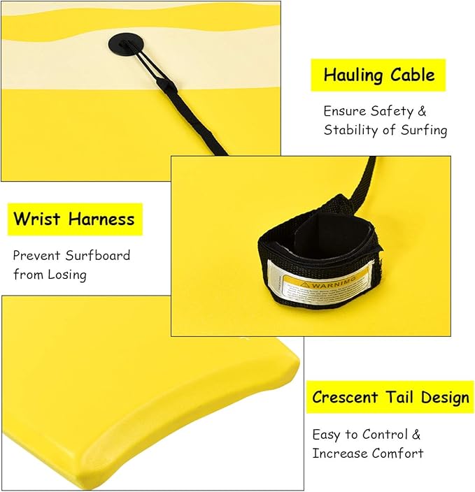 - 【Strong Buoyancy & Light Weight】Strong buoyancy and sturdy construction give our body board a strong load-bearing capacity. It is not easily deformed and faded and can be used for a long time. The light weight makes it easy to carry, so you can take it wherever you go.