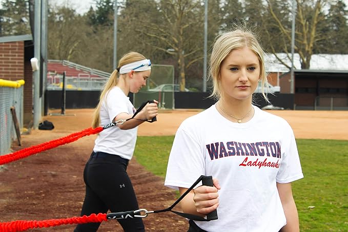 - TECHNOLOGICALLY ADVANCED: Our 3X double wall, anti-snap pro bands are the smoothest bands in the industry. No recoil, reverb, or spring back of most other popular bands. Biggest ROMs in the industry with safety sleeves & hardened steel carabiners. Games are won during your cages, tees, bands work, plyo, thrower, mat, beisbol, mound, weight, plate, catch, throwing, & toss routines. Now you can add our system to your indoor, outdoor, or field regimen!
