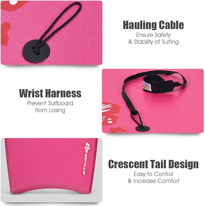 - 【Wonderful Surfing Experience】On the hot summer days, you can use our body board to enjoy a wonderful and exciting surfing experience in the sea, beach, river, swimming pool and water park. Exquisite patterns and bright colors give you the best surfing fun. It can help you relax and exercise your back and abdomen muscles.