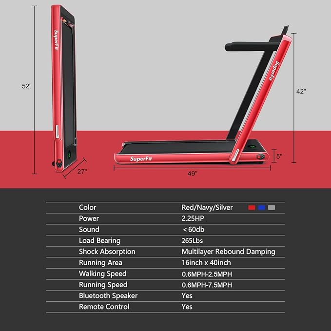 - 【2.25HP Quiet Motor & Shock-absorbing Design】With a powerful 2.25HP motor on the base, this premium treadmill will provide you with high intensity and silent exercise. The 5-layer shock-absorbing running belt provides an effective cushion for your joints and muscles.