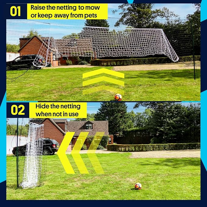 - Sized for Play: Standing 10ft tall, stretching up to 29ft wide, this large soccer rebounder goal is ideal for family play and skill-building. The inner white goal (16ft x 7ft) is regulation-inspired for realistic training and the backstop net stops even the wildest kicks. It’s big enough for grown-ups to practice, yet still accessible for little ones learning the game. Width can be set narrower during setup to fit your yard. Measure your backyard space before ordering to ensure the perfect fit!