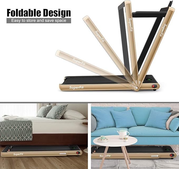 - 【Easy to Install, Move or Store】Installation-free design saves you time and energy. The wheels on the front of the treadmill can facilitate you to move it around. And you can fold it into a compact size to store it under your bed or sofa. And the treadmill has passed CE, ROHS, CB, EN957, IEC certifications by SGS. Please do not use the treadmill on carpet to avoid overheating
