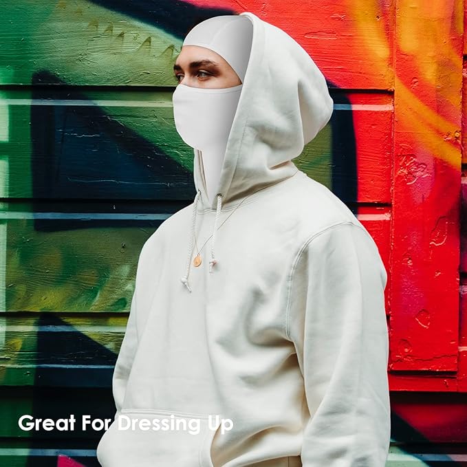 - ?�Versatility?‘Can be worn as opened or closed balaclavas, face masks, neck gaiters, scarf or bandanas, helmet liners & ninja hoodie, or headbands even wristbands. People use Achiou full face mask for skiing, riding, fishing, snowboarding, motorcycling, hiking, climbing, running or cosplay. Just don't wear it in an airport or bank