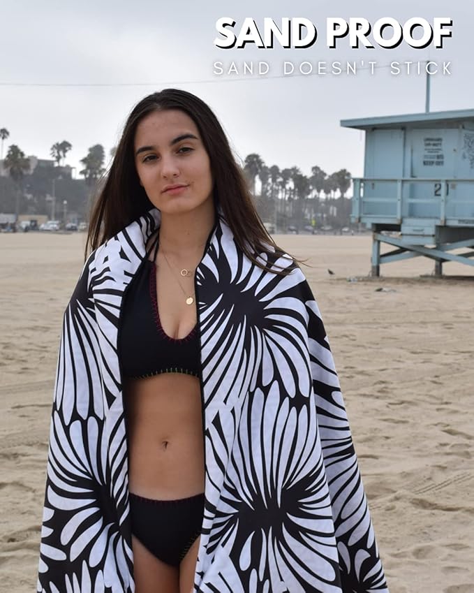 - EXTRA LARGE SIZE YET COMPACT FOR TRAVEL - This beach towel is oversized, providing ample space for lounging. Despite its big size, the travel towel is lightweight and compact taking up minimal space in your beach bag. Easily fits into the included pouch for packing during any vacation.