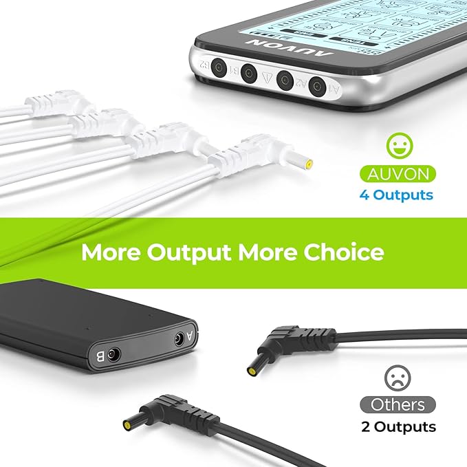 AUVON 4 Outputs TENS Unit EMS Muscle Stimulator Machine for Pain Relief Therapy with 24 Modes Electric Pulse Massager, 2" and 2"x4" Electrodes Pads, Black