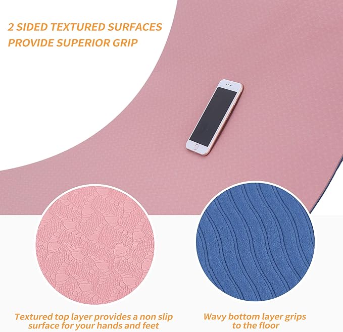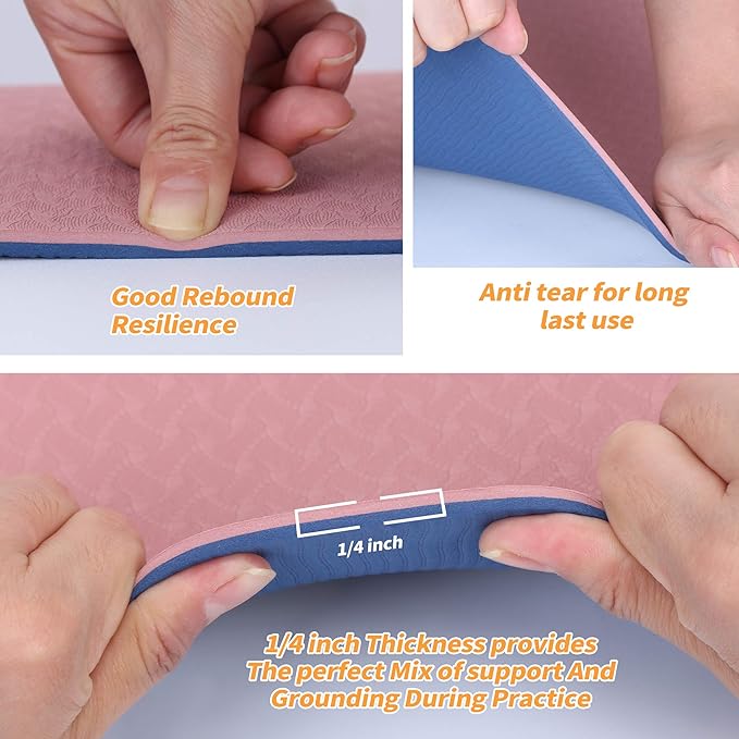 - 🧘♀️【Durable and Spacious TPE Yoga Mat】Our yoga beginners kit includes a premium TPE yoga mat with double-sided non-slip surfaces and two color options. Measuring 72"L x 24"W, it provides ample space and a 6mm (1/4in) thick for optimal comfort and support. The fast rebound technology reduces impact force, protecting your joints while maintaining stability.