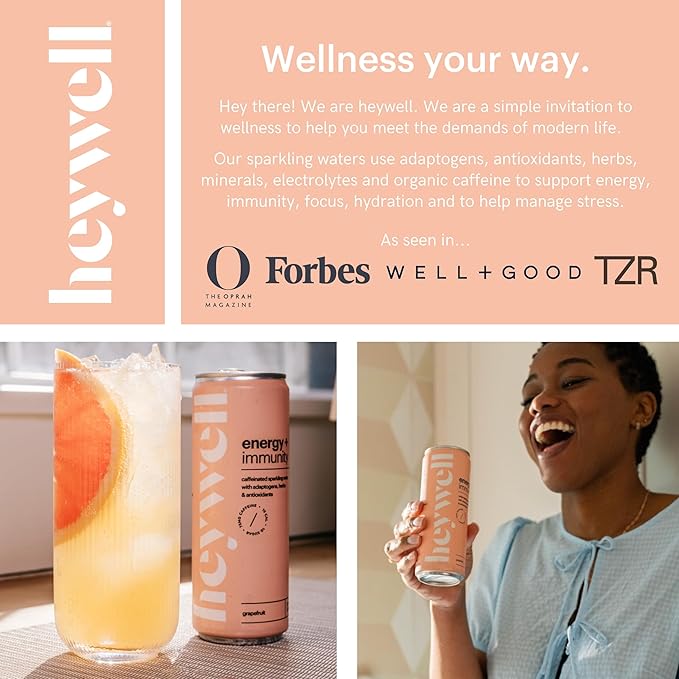 - MADE FOR MODERN LIFE: Heywell is made to give you sustained energy, support immunity and to help manage stress. Heywell is the perfect way to kick off your day. Sparkling and refreshing with a taste of fresh peeled grapefruit. Only 15 calories and 1 gram sugar. Electrolyte drinks made with organic ingredients, Non-GMO, Vegan, Gluten Free, Dairy Free, Adaptogen Drink, and a mocktail non alcoholic beverages.