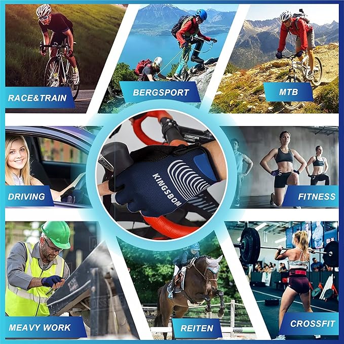 KINGSBOM Breathable Cycling Gloves, Shock-Absorbing Bike Gloves with Light Silicone Gel Pad, Anti-Slip Bicycle Gloves for Men and Women
