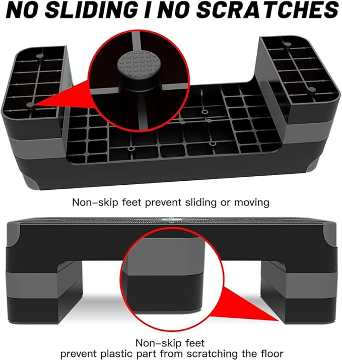 - ANTI-SLIP & NO SCRATCHES: The circular grooves and non-slip textured top of GYMMAGE Workout Stepper provide more grip and traction for exercise, prevent you from slipping/sliding. And leave you feeling safe and your movements worry free. The 4 non-slip rubber feet provide stable performance and leave no scratches