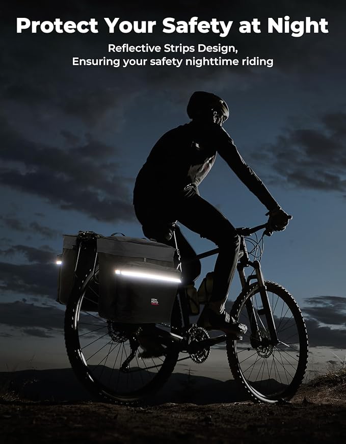 - Large 34L Capacity: This KEMIMOTO pannier bike bags has been upgraded to a large capacity of 17L per bag, and the total capacity of 2 bags is UP to 34L. Includes 2 main compartments for each bag. Plus the 2 pockets on the outside, ideal storage for ebike accessories, daily essentials, biking gear. Ideal for grocery, commuting, and outdoor trips