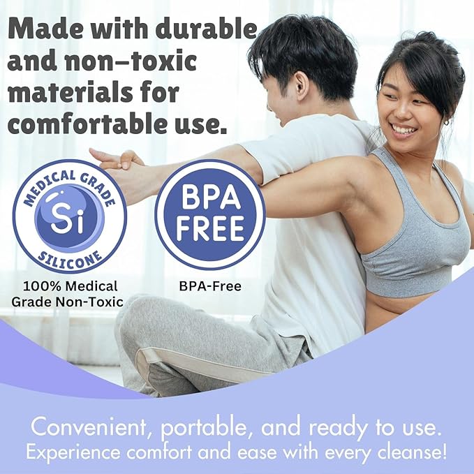 - SAFE AND GENTLE CLEANSING: Find peace of mind with our colonic cleanse kit equipped with a 2-liter premium happy bum bag, made from 100% medical-grade non-toxic silicone and BPA-free. No harsh chemicals βjust gentle, soothing relief. With a 2-meter (6.5ft) connection hose and 3 Replacement Tips, including 2 silicone soft entry enema tips and 1 white colonic nozzle for a deeper clean.