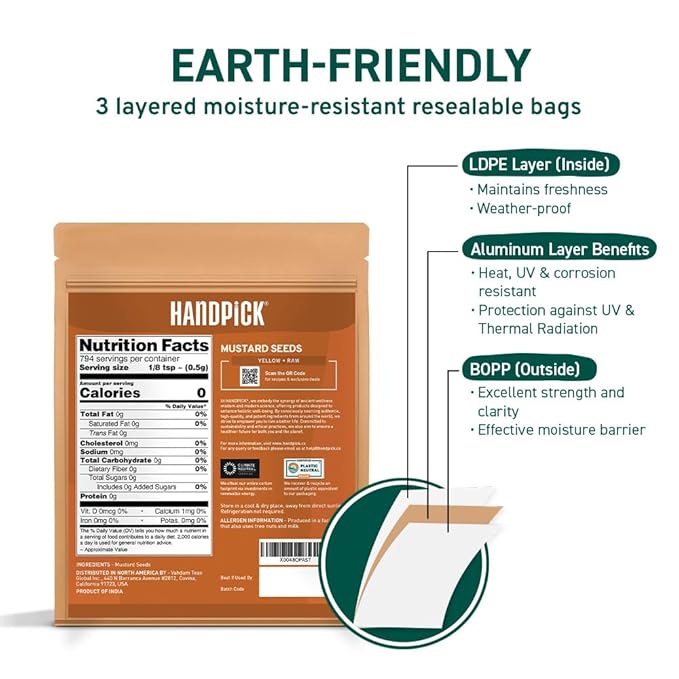 HANDPICK Yellow Mustard Seed (397g/14oz) Non GMO, Gluten Free, 100% Raw, Sourced from India, For Cooking, Pickles, Packed in Resealable Ziplock Pouch