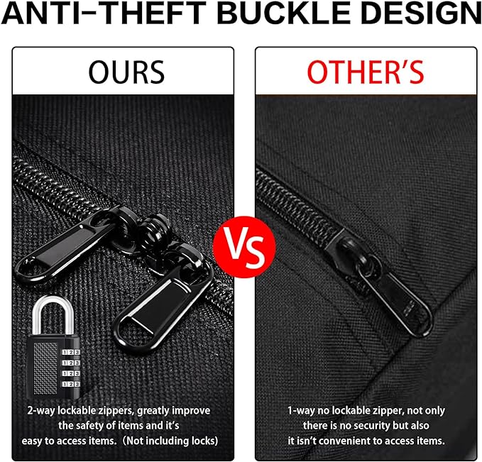 - DOUBLE ZIPPER: The main compartment of the travel bag is equipped with a double-ended zipper for easy use. High-quality zippers stay smooth even with long-term use. The two zippers can be locked with a lock to ensure the safety of items.