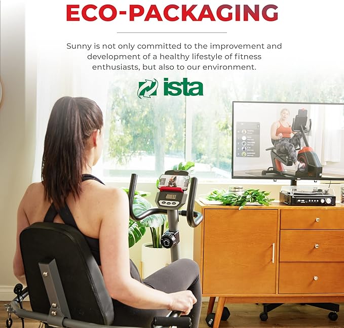 - 【ECO-PACKAGING】Sunny promotes a healthy lifestyle and environmental care. This recumbent bike is packaged with recyclable, sustainable, and biodegradable materials. Fully ISTA-6 certified for the highest standards.