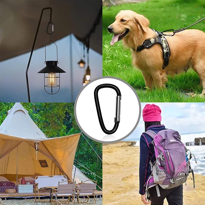 - 【Design】-Black Aluminum Caribeener Clips, Silver Steel Ring. Spring-Loaded Closing Gate Makes it smoothly to open and close. Coloring through an oxidation process, which makes it very difficult to fade/rust, except scratching.