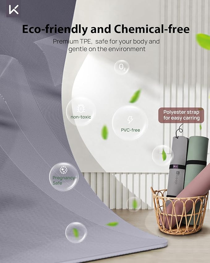 - Planet-friendly Comfort for Body and Mind -- Crafted from premium TPE, making it both eco-friendly and chemical-free. This yoga mat is free from plasticizers and formamide, ensuring it's safe for your body and gentle on the environment. Not only offers superior cushioning and grip but also ensures durability and long-lasting performance