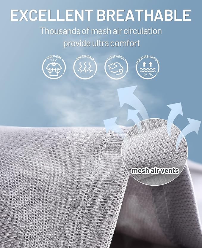 • Excellent Breathable --- Soft polyester fabric surface with thousands of mesh air circulation provides comfortable which can wick moisture quickly to keep your body cool while indoor or outdoor activities