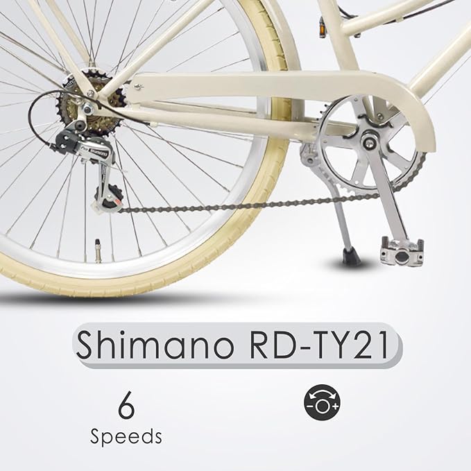 - 🚴♀️【Women-Centric Ergonomic Design】Crafted for female proportions: A low-step high-carbon steel frame enables easy mounting, while the swept-back handlebars promote upright posture (reducing back strain). The brown synthetic leather saddle with shock-absorbing springs combines vintage aesthetics with modern comfort.