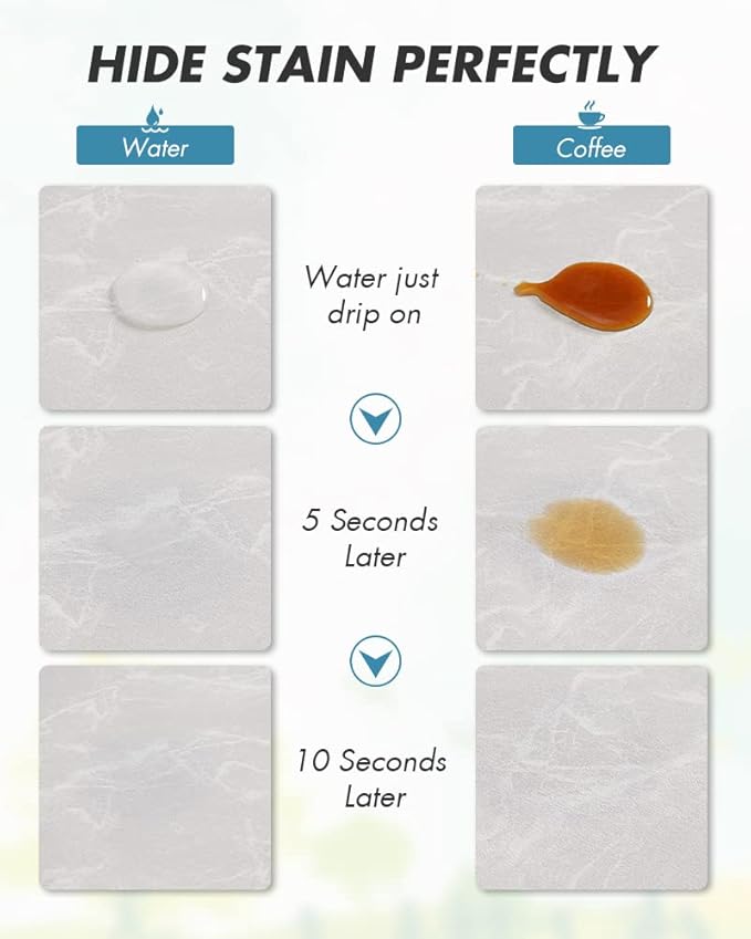 - NO WATER MARKS: 0.2" thick special PU surface hide coffee stains, milk stains and any other dark messy stains well. Say goodbye to traditional coffee mat full of stains