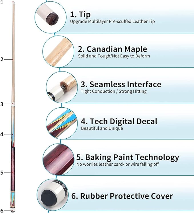 - ?…【ATTRACTIVE BAKING PAINT DESIGN??AKLOT Pool stick adopt optimized lightning maple and high-quality black metal nano baking paint technology.You do not worry about the leather crack or thred falling off.