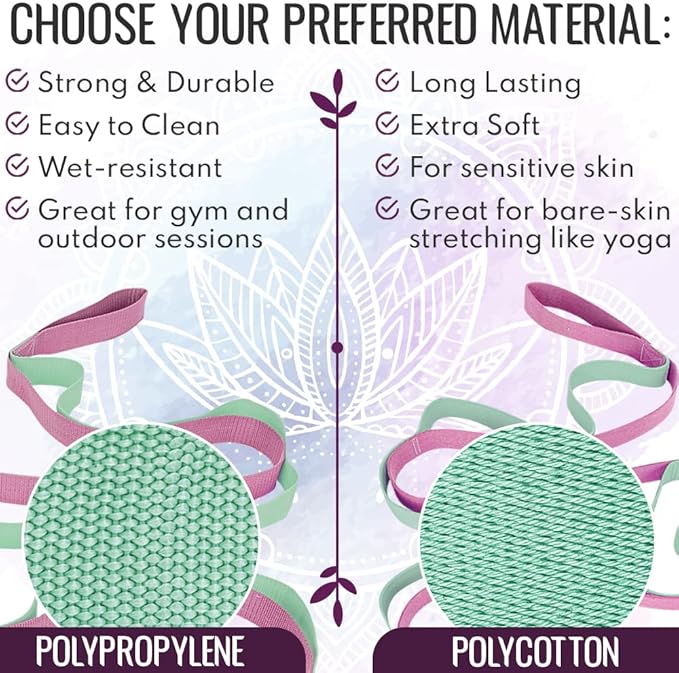 - MATERIAL DETAILS: Our straps are made from durable Polypropylene and come in 1” width (75-inch length) and 1.5” width (79-inch length) options. All our straps have 10 individual loops.