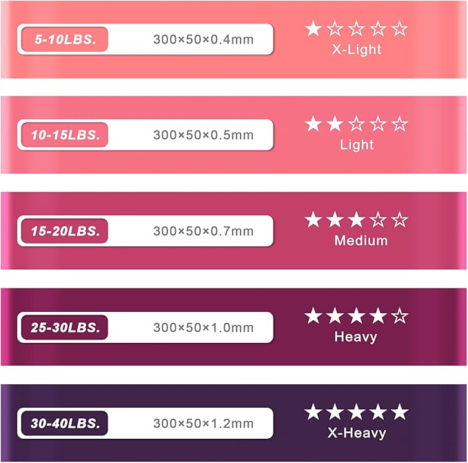 - 【5 Resistance Levels】 Resistance bands with 5 different levels of resistance. Can be used by all family members or to reach different training goals.