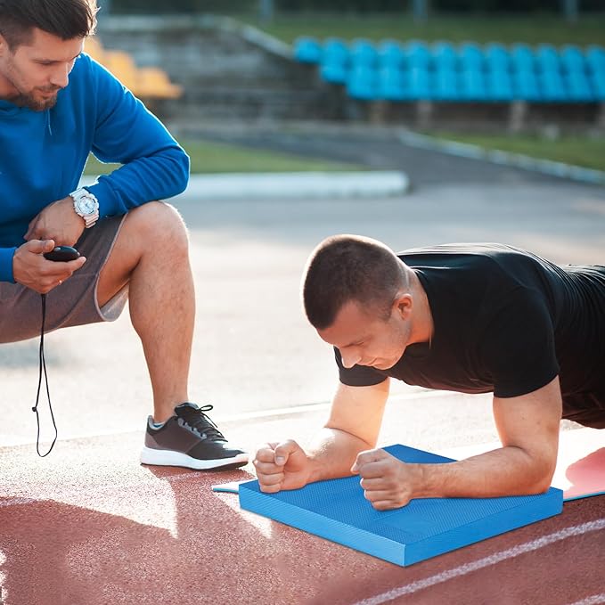 - Balance Pads for Exercise Size: 15.7” L x 13” W x 2” H size, Convenient for standing on and performing lunges, push-ups, squats, sit-ups, yoga poses, planks, crunches, etc. 2 inch thick comfort with your knees, elbows, ankles, sit-bone, and any other pressure-sensitive areas.