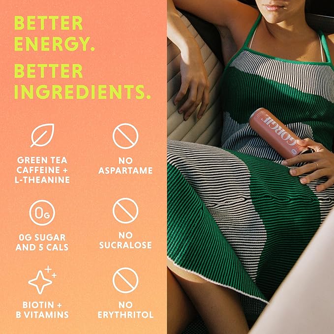 - WHERE ENERGY MEETS WELLNESS: Take on your morning without the crash of sugary energy drinks. GORGIE contains simple, clean ingredients and 150mg of green tea caffeine — a healthy alternative to coffee and mass market energy drinks. Did we mention 30mcg of biotin for hair, skin & nails with 100% of your daily value of Vitamins B6 & B12?!