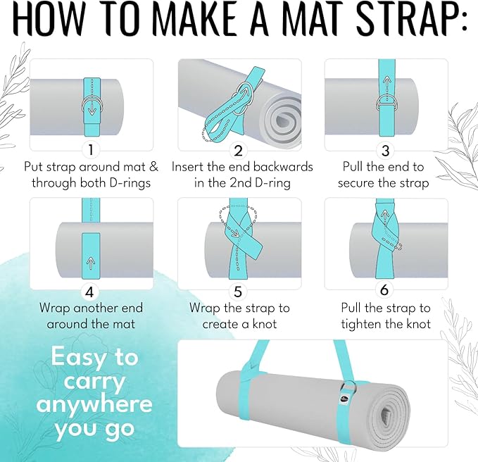 - STRONG & COMFY: Our yoga belts are made from high-quality cotton blend with eco-friendly yarn dyeing. It is non-elastic, durable and easy-to-clean material. The thick tight weave yet delicate soft-to-skin texture of the belt ensures both durability when carrying the mat and comfort during and comfort during practice. The D-ring loops are made from sturdy corrosion-resistant stainless steel and holds the yoga strap.