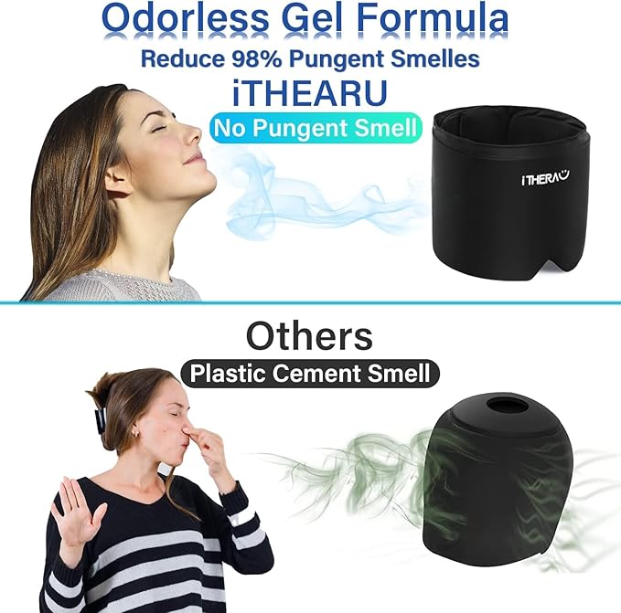 - Updated Odorless Material:Different from other old migraine relief cap, our migraine relief cap made with cutting-edge material and expert-grade gel, it's already cool without even frozen. Non-toxic and with no smell, thick solid gel stays cold longer, remains smooth and pliable when frozen, very cozy to wear. Stretchable gel conforms closely to all different head shape, gives tight compression to the head, provides more cold penetration to relieve headache, migraine and tension