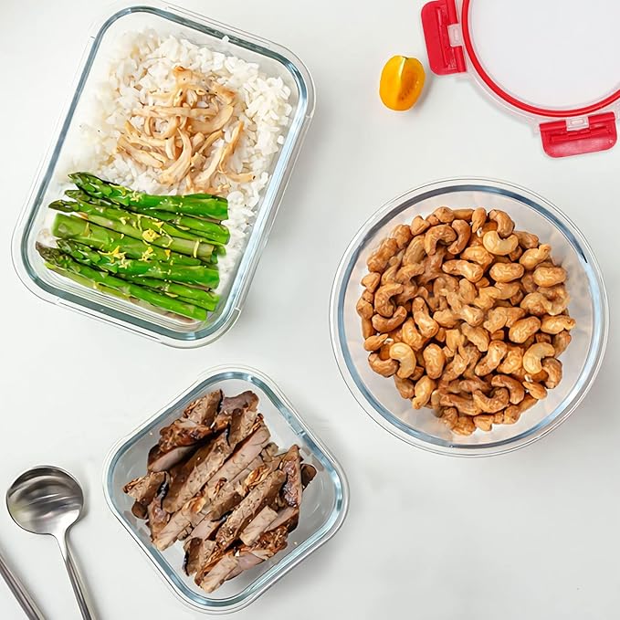 - FOOD GRADE GLASS CONTAINERS WITH LIDS: Made of food grade material, food can be directly stored and cooked in our meal prep containers without absorbing stains or smells. Ideal for meal prepping, storing leftovers, keeping portion control and taking meals to gym, picnics, office lunches, travel, and more.