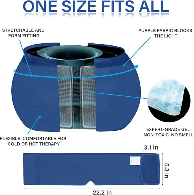 - Stretchable migraine relief cap - This migraine relief products gives total cold compression coverage to your head, stretchable gel conforms closely to all different head shape, and easy to adjust to the perfect personalized fit. Its soft gel design does not put uncomfortable pressure on specific areas like hard ice pack inserts do. This stretchable, single-piece, flexible headache mask allows you to lie in bed or on the couch comfortably