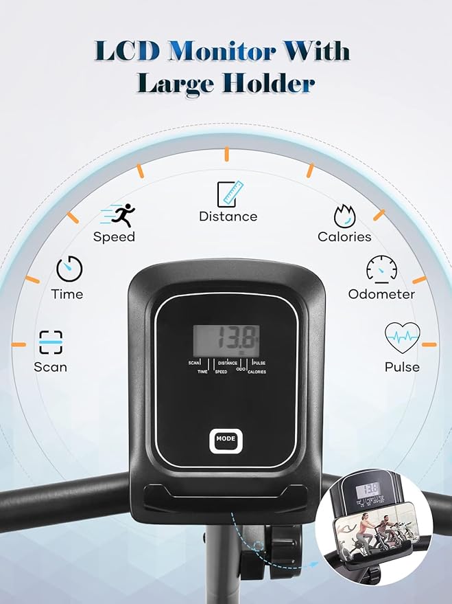 • Functional LCD Monitor and Device Holder: The exercise bike can track your workout data in real-time: Time, Distance, Speed, Calories,Total distance and Pulse, make you stay focused on your workout goals. Device holder and mobile phone holder provide a great convenience for your cycling exercise. You can enjoy your movie or music at the same time. Best recumbent exercise bike for seniors or adults and whole family cardio workout