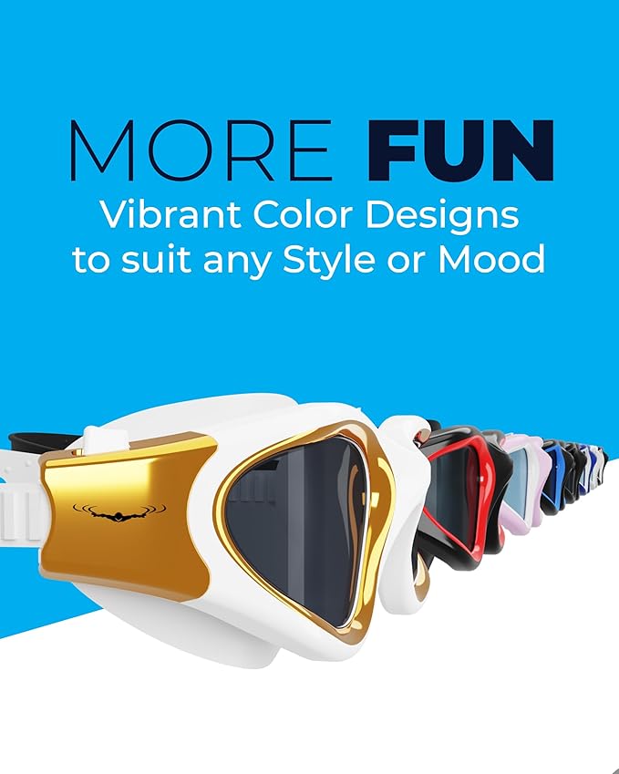 • ✓ SUPERIOR DESIGN ~ Unlike other single strap swimming goggles, our split Y-shaped strap design has no trouble in ensuring a fixed position of the goggles on the head even during the most vigorous swimming. Adjusting the size of the strap is easier, faster and can be done even during swimming with our one-click buckle system