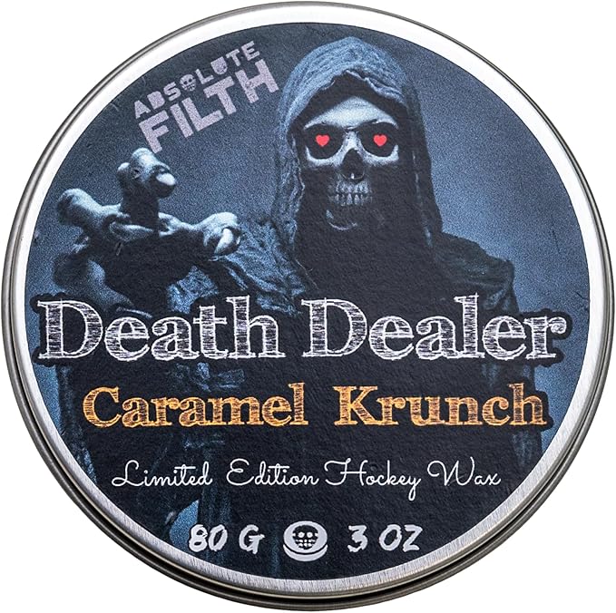 - CARAMEL KRUNCH SCENT - A vibrant Caramel scent with lush butter. Undertones rounded out with vanilla and sugar. Absolute Filth Hockey Wax will not be filthy to apply. It comes in a slip top, rust proof tin that can take the punishment of living in a hockey bag with your accessories.