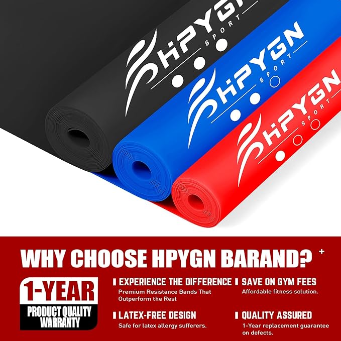 • 【Different Level of Resistance】- The workout bands is divided into 3 different levels of resistance:Yellow band(Light, 0.35mm), Pink band(Medium, 0.45mm), Blue band(Heavy, 0.55mm).Never worry about the exercise bands too too hard, easily switch between the 3 levels to your preference anytime.