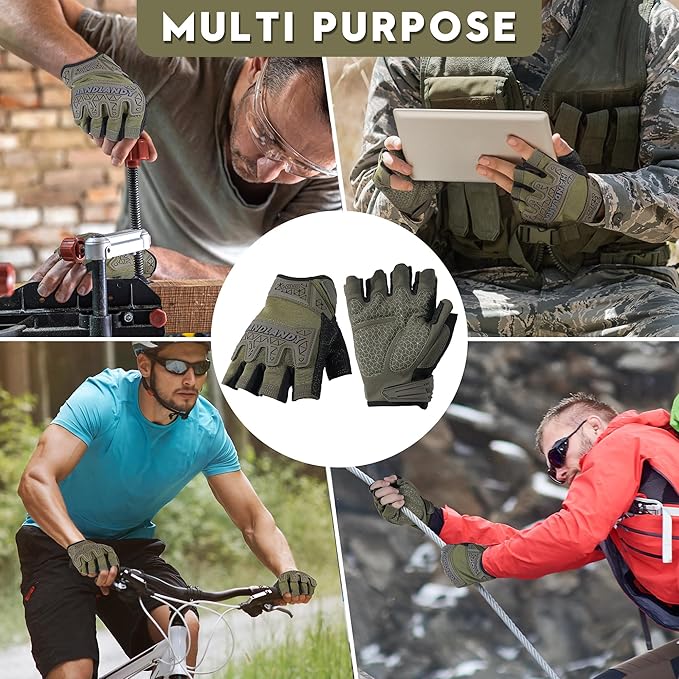 HANDLANDY Tactical Fingerless Impact Gloves for Men, Padded Grip Half Finger Work Gloves, Utility Trucker Driver Gloves (Army Green, Medium (Pack of 1))