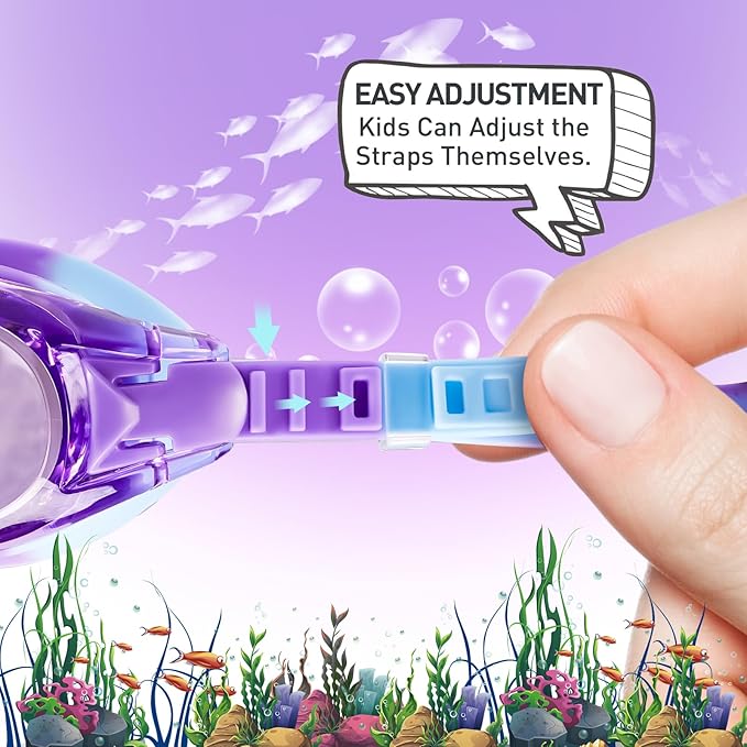 - 【Easy Adjustment:】The quick adjust straps can be easily adjusted by kids or parents. Just need to press the clasp and pull the strap to the proper length. The elastic head strap can stretch strongly without breaking and and it extremely fits most kids' heads. Children can stand on their own feet and adjust the strap themselves.