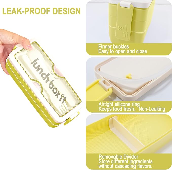 - 【What You Get】A simple 3-layer stackable lunch box, embedded forks and spoons and permanent technical support, if you have any questions, please feel free to contact us.