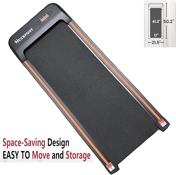 - [Easy Setup and Convenient Storage] This portable treadmill is lightweight and arrives fully assembled, requiring no setup. With two front wheels, itβs easy to move and store. Its compact design allows it to be tucked away under a bed, beside a wall, or even placed on a sofa. Plus, the treadmill features a dedicated spot for the remote control, keeping it conveniently within reach.