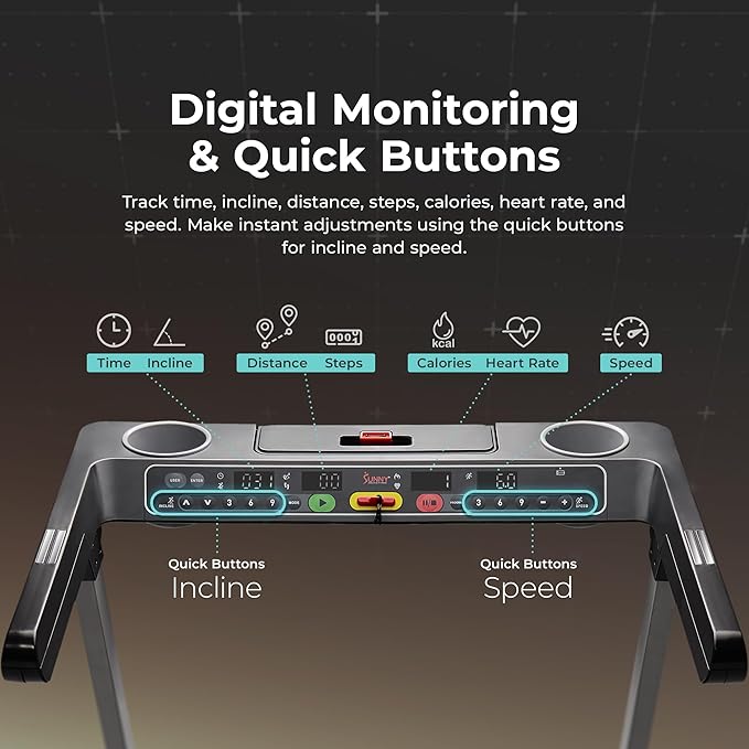 - 【ADVANCED LED PERFORMANCE DISPLAY】Monitor speed, time, distance, calories, incline, steps, and heart rate at a glance.