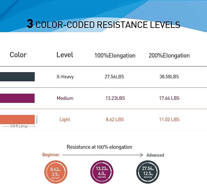 • 【Fun & Easy To Use】 The Bands are Perfect for Resistance Training and Rehabilitation, Which Provides Both Positive and Negative Force. You Can Take a Couple Wraps Around Your Hands for More Tension and a Secure Grip. or Just Tie a Knot, For Use as a Loop Band, and also You Can Double Them Up for Even More Resistance. The Bands are Vibrantly Color-Coded, Once You are Ready for a More Challenging workout, You can Move Up to The Next Color.