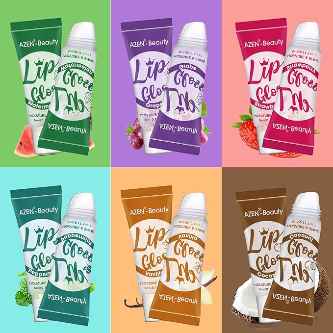 - Flavored Lip Gloss Set: 6 Natural Flavors - Strawberry, Watermelon, Coconut, Vanilla, Mint, Grape. 24 pack clear lip gloss set, light and hydrating, ensure soft and smooth lips, add luster and moisturizing luster to lips